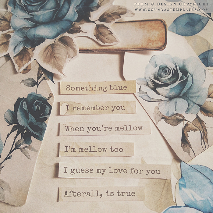Featuring muted blue florals, gently distressed textures, and handwritten poetry, it’s perfect for creatives and romantics alike.